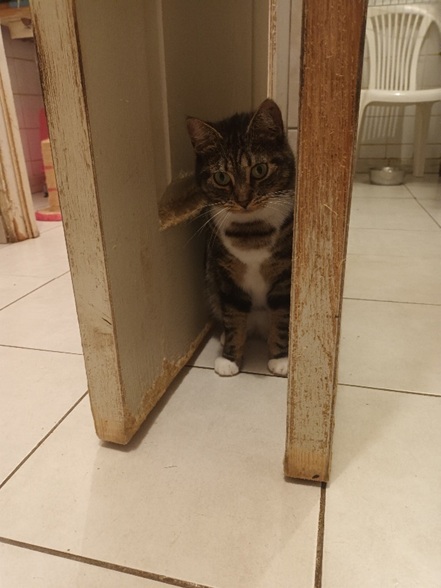 Gribouille femelle tigrée et blanche née le 15/01/2022. Pleine de vie, elle n’est pas très sociable. Lorsqu’elle se laisse caresser, cela ne dure jamais longtemps avant le coup de patte.
