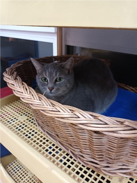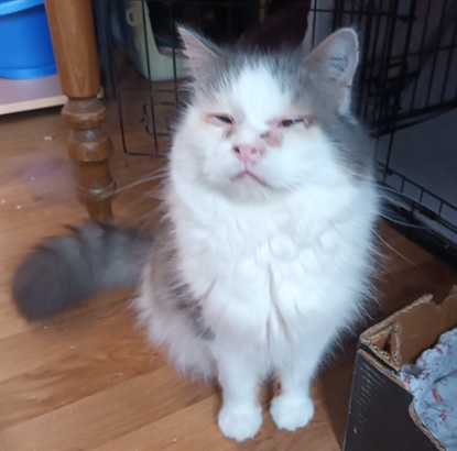 Robert est né en septembre 2023. Malgré des problèmes de canaux lacrymaux, qui nécessitent de lui nettoyer régulièrement les yeux, il va bien. Sans être affectueux, il se laisse caresser.