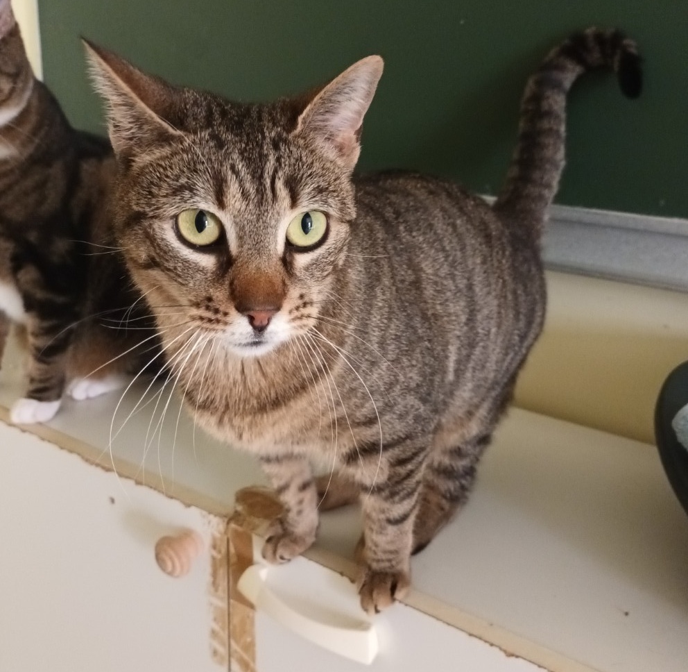 Inette femelle tigrée gris cendré née en 2019. Elle se laisse caresser uniquement si elle n'a pas le choix.