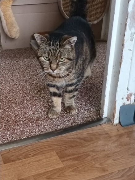 Robert est né en septembre 2023. Malgré des problèmes de canaux lacrymaux, qui nécessitent de lui nettoyer régulièrement les yeux, il va bien. Sans être affectueux, il se laisse caresser.